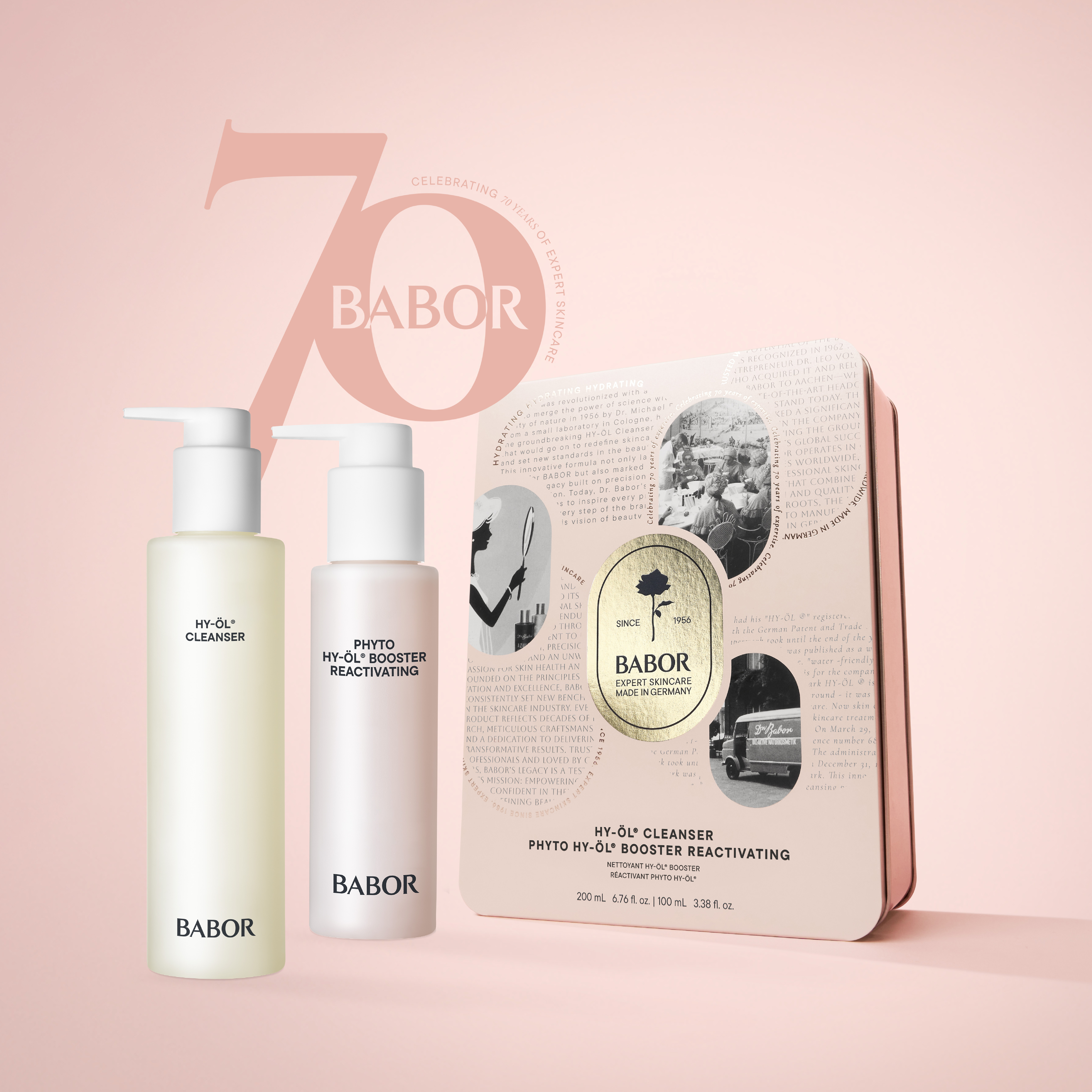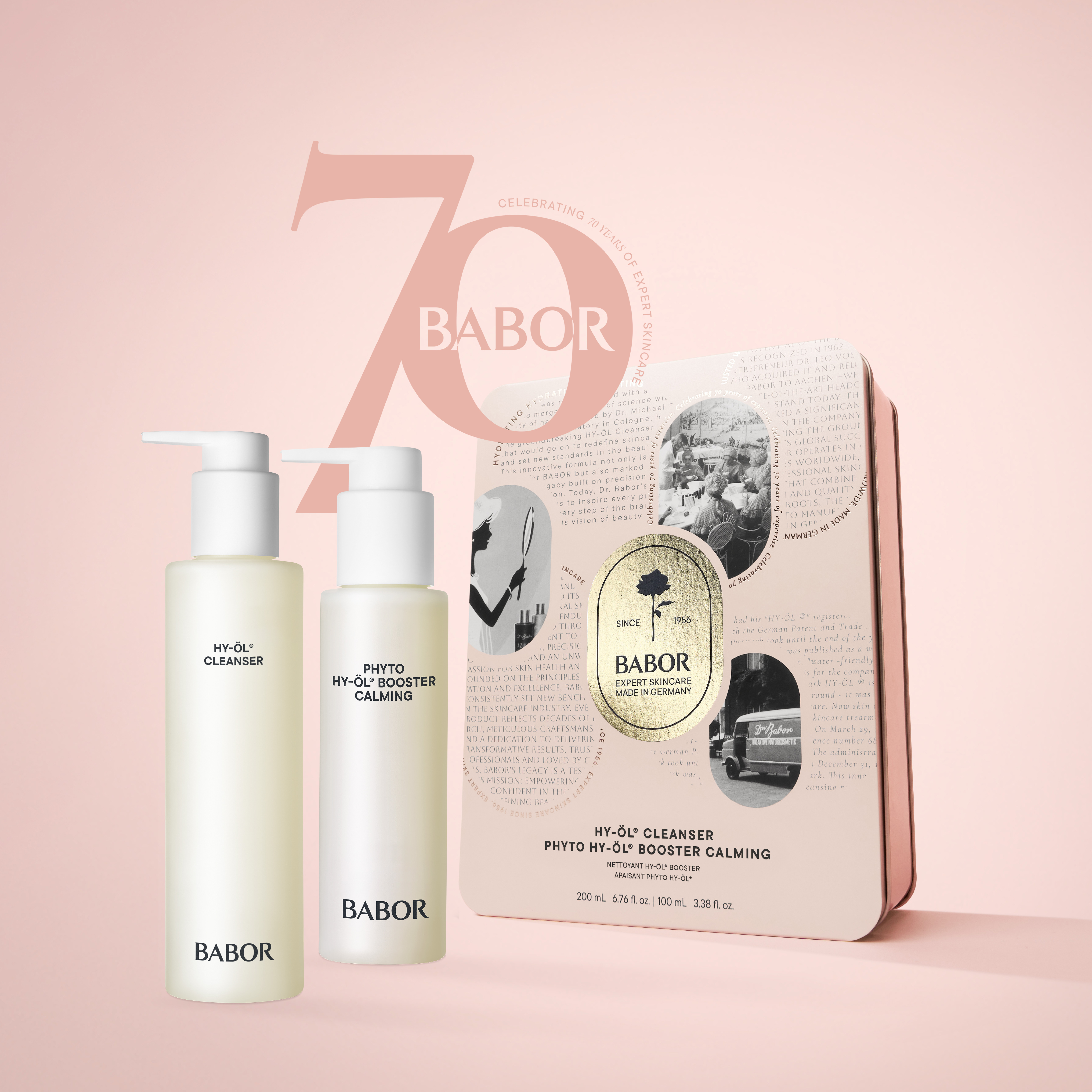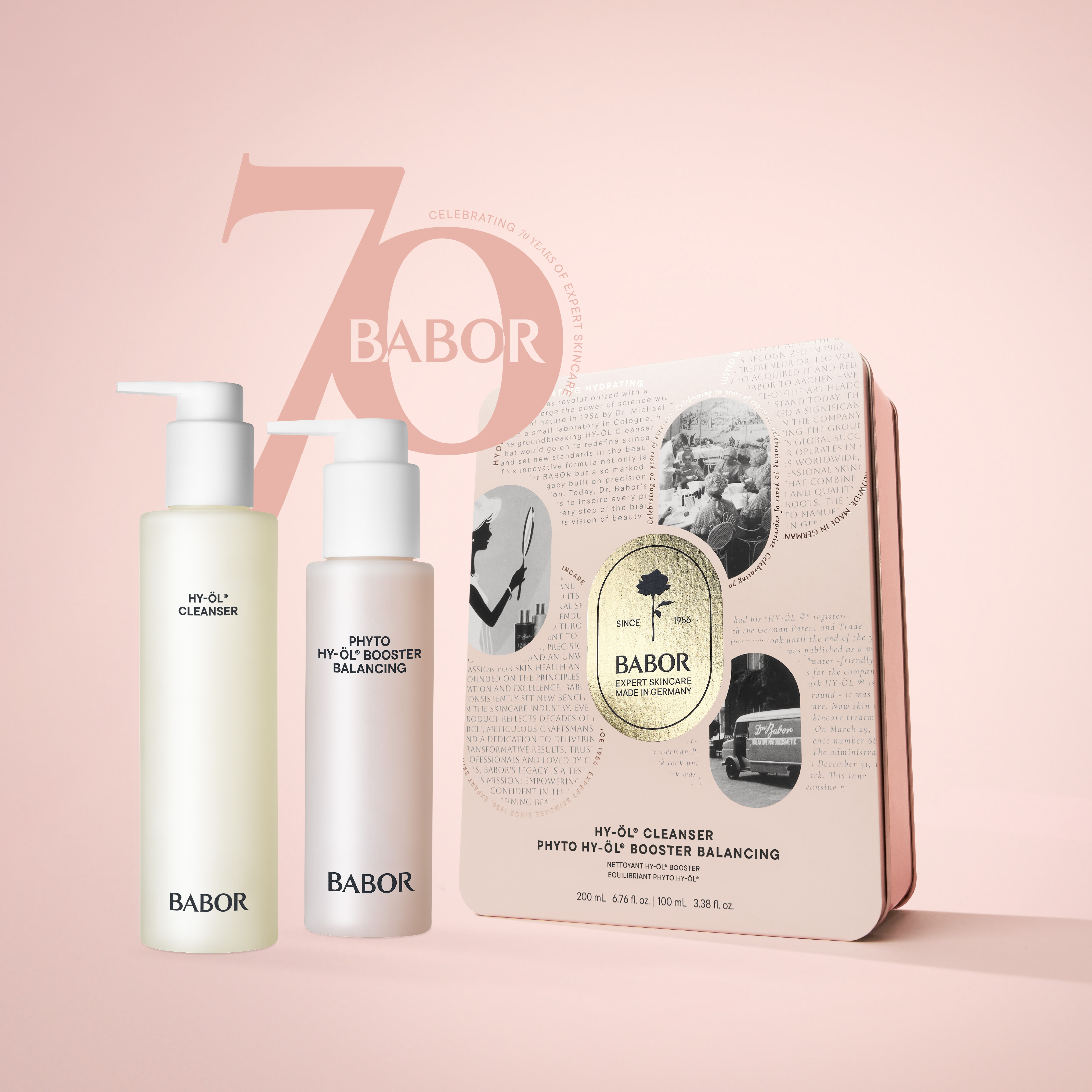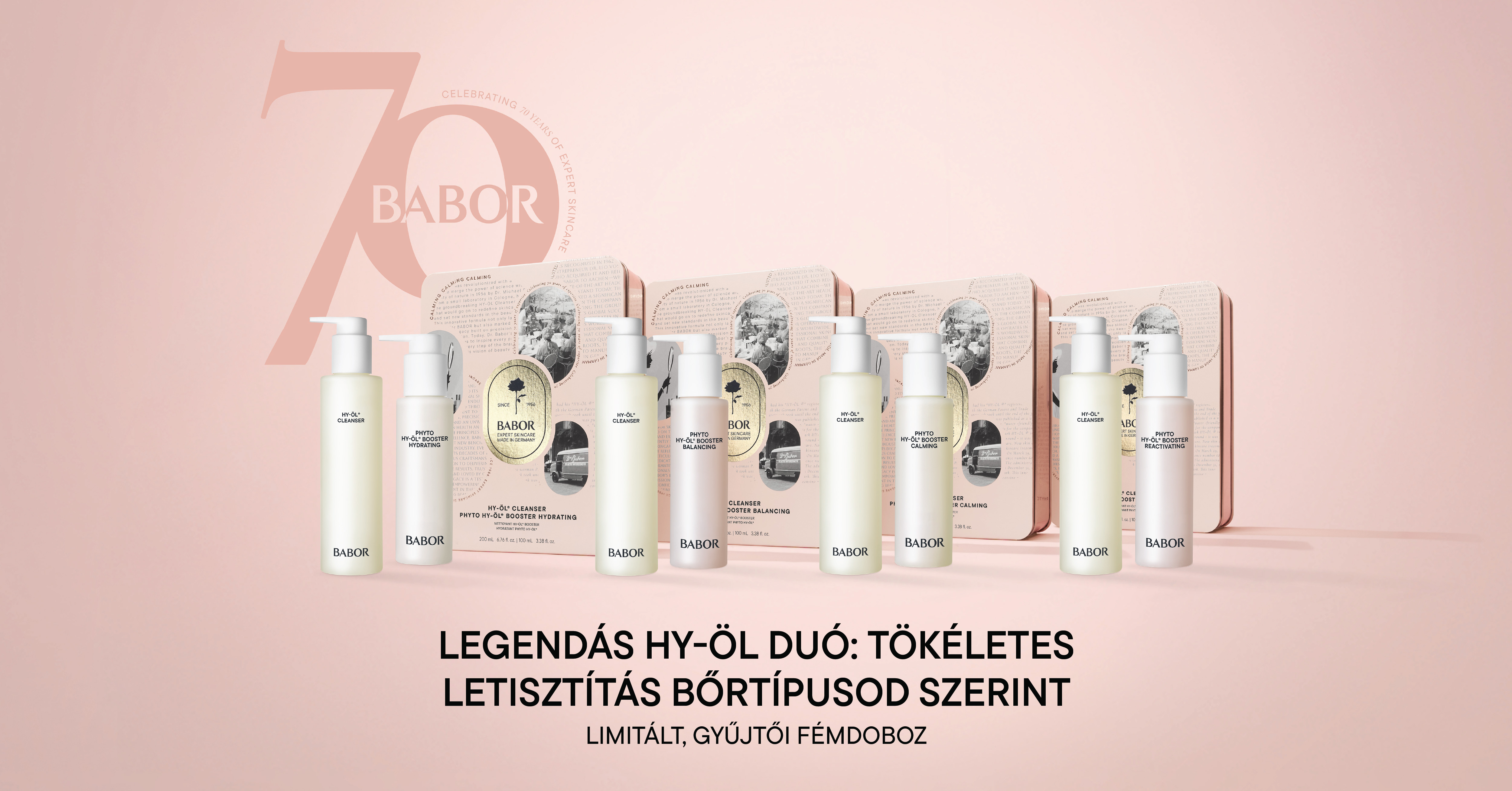 FUN FACT ÉRDEMESTUDNOD:A hidrofil tisztító olajak a HY-ÖL márkanévvel kerültek be a BABOR történelmi feljegyzéseibe, és a mai napig klasszikus BABOR termékként tartják számon.A BABOR kétfázisú tiszítása, a HY-ÖL és a különböző bőrtípusnak és állapotnak megfelelő fitoaktív anyagok, még mindig egyedülállóak a kozmetikai piacon.Tudj meg többet a BABOR-ról!